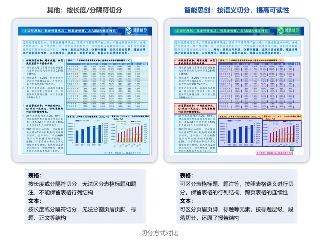 智能思創憑借其尖端的文檔解析技術,極大地提升了用戶在信息檢索與處理的效率。與其他公司相比,智能思創按語義切分文檔,提高了可讀性,不僅能迅速鎖定關鍵內容,還能讓用戶輕松編輯和修正表格數據,實現精準信息管理。